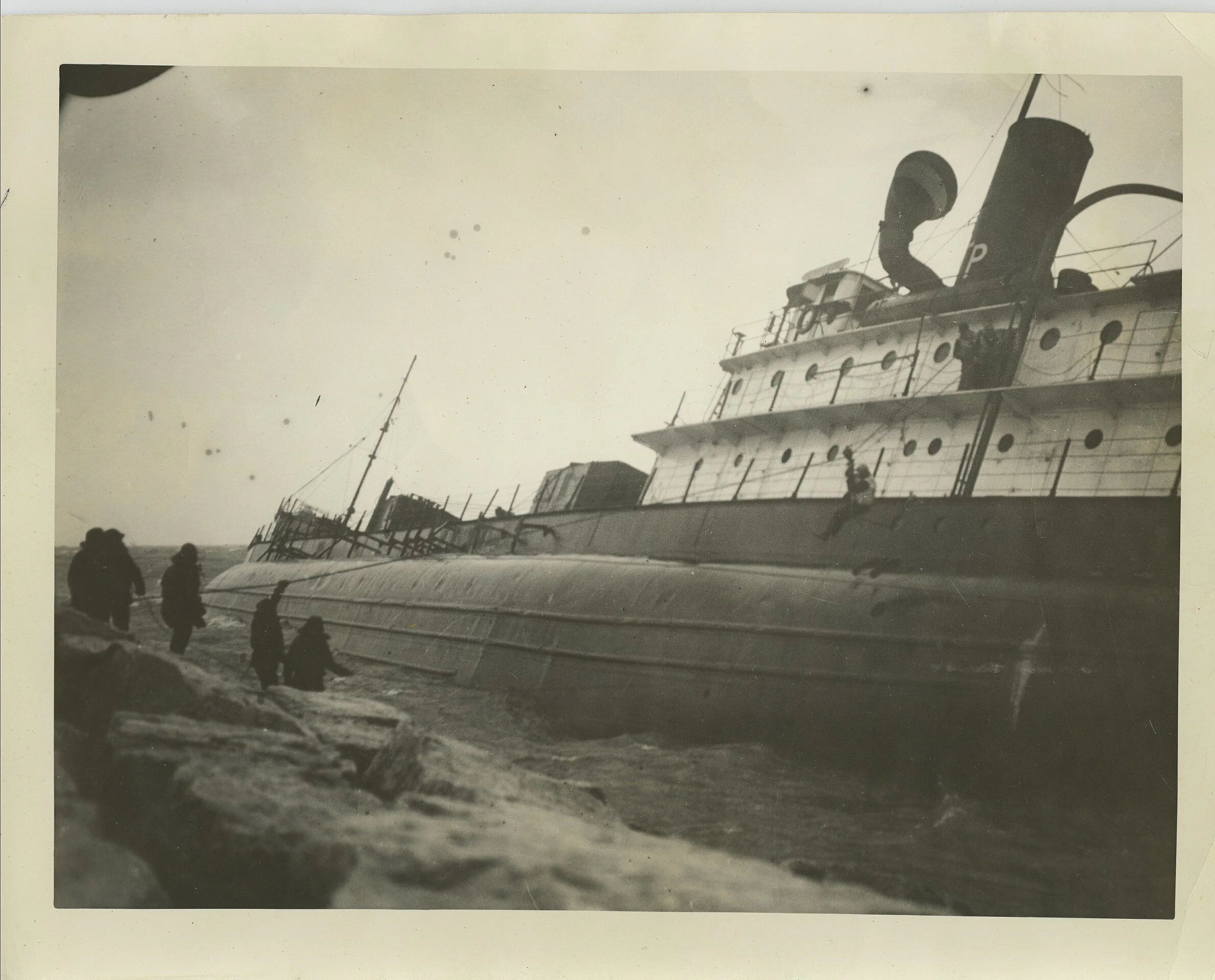 Crew of the Novadoc warm at the Coast Guard’s potbelly stove
